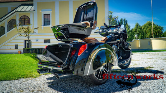 Rudi wollte immer ein Trike und die Indian Roadmaster war genau die Richtige dafür. Wir machten mit Rudi und seiner bezaubernden Frau Gerti, für die Kultriders, ein Fotoshooting im wunderschönen Schlosshotel Haindorf bei Langenlois in Niederösterreich.